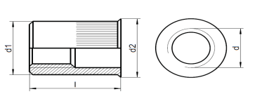 Threaded inserts, reduced flat countersunk head in various sizes from M4 up to M8